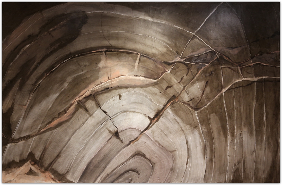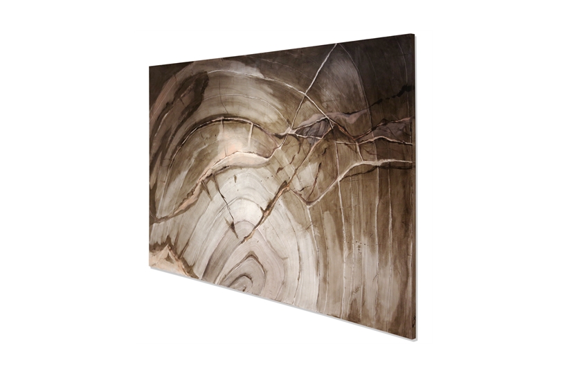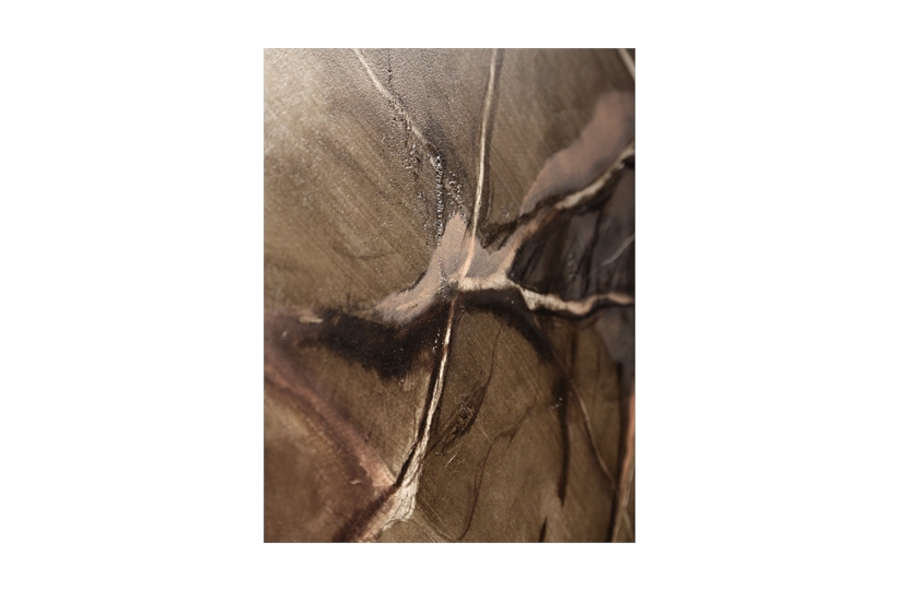 Mineral Slice by Emily Swift-Jones. Colours in mink and black with salmon pink shading and veins. Using petrified wood as inspiration. Individually hand painted to order as part of a limited series specially designed for The Sofa & Chair Company.