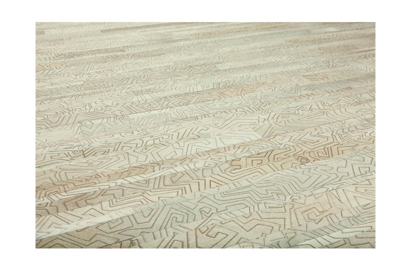 Give any room a beautifully textured foundation with this Vektor hide, rendered in a neutral hue. The traditional motif of the skin is reworked with geometric detailing to create a unique design visual for your floors.