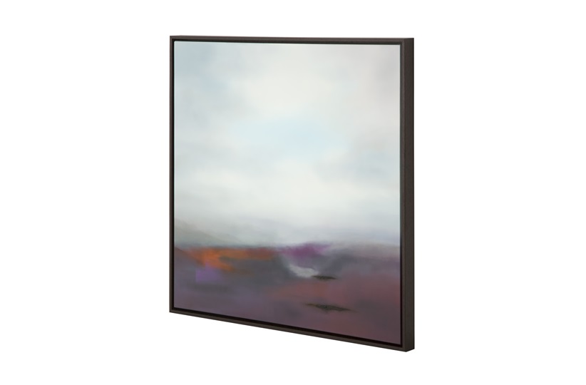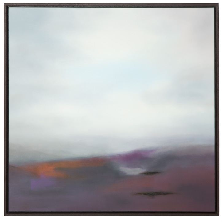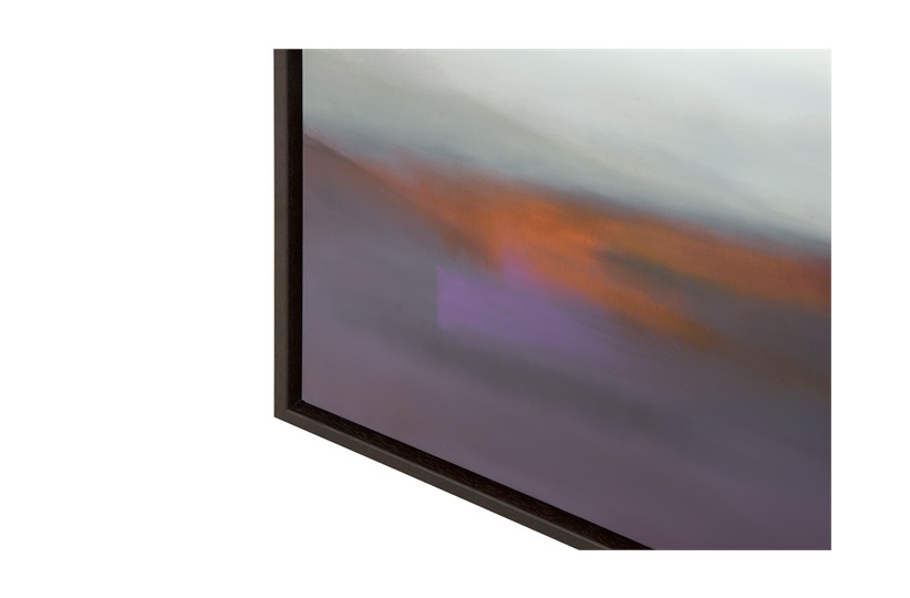 This abstract oil canvas by artist Adrienne Byrne, depicts blurred, uneven lines and brush strokes where the warmth and earthiness of land meets a moody grey sky. This smooth, seamless merging of colour and form holds the gaze, allowing for individual creative and emotional interpretation of the landscape. MR-ADRB-WAL-001-001