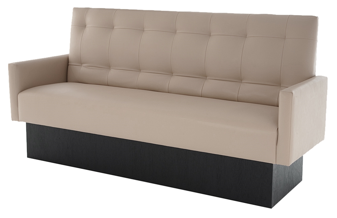 Clean lines and luxurious quilting combine in this unique banquet seat, complete with show wood plinth Created for one of our prestigious bespoke clients; we can reproduce this versatile design in the same dimensions and for the price listed on our website. Alternatively if you require different dimensions we can alter the size to fit your exact requirements. Talk to one of our friendly sales consultants for advice (BAN-B0181)