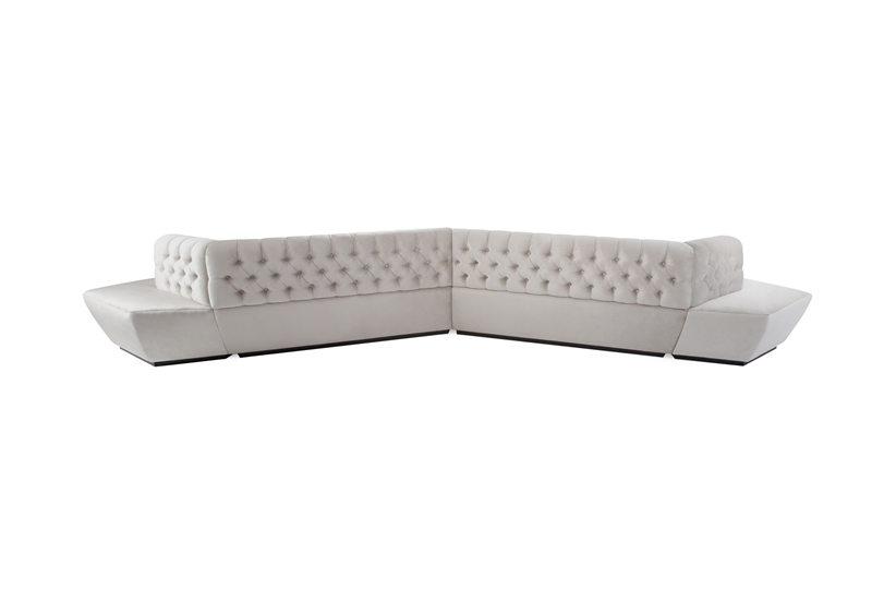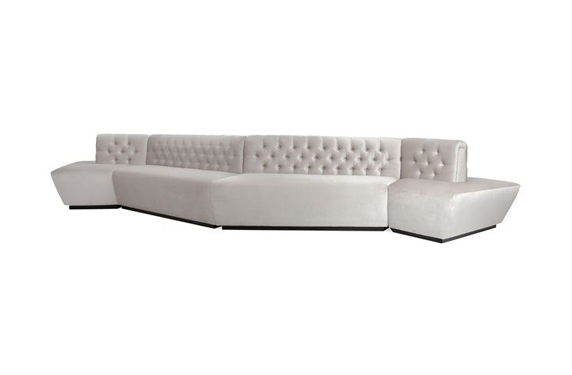 A double sided hybrid banquet seating corner sofa with asymmetric styling. Offering marvelous craftsmanship and detail. If you are looking for a similar product, please get in touch with our sales team who will be happy to help personalise your sofa for your individual requirements.