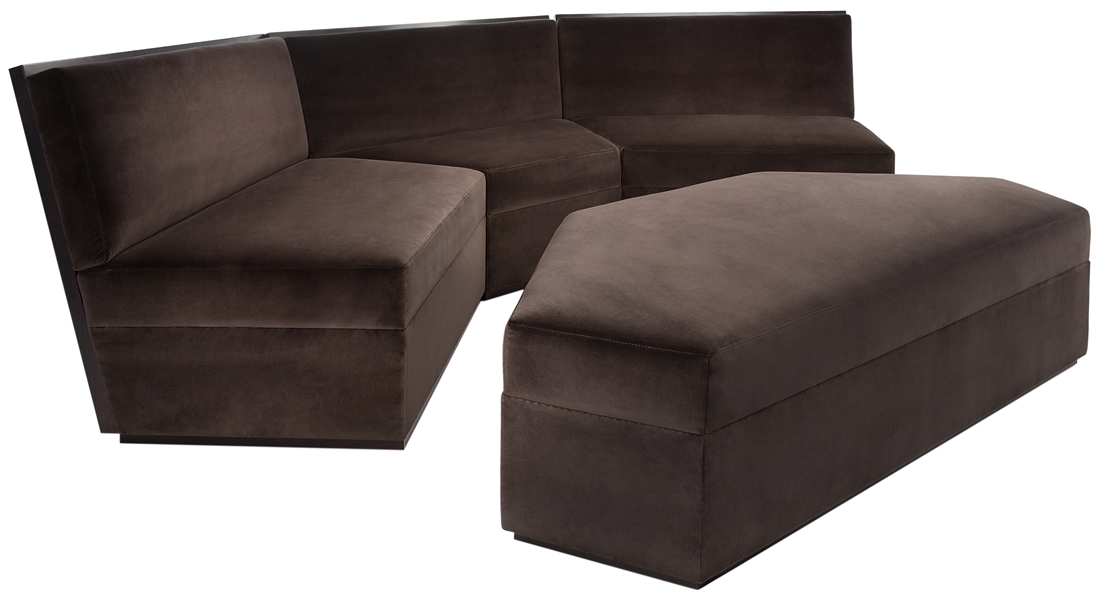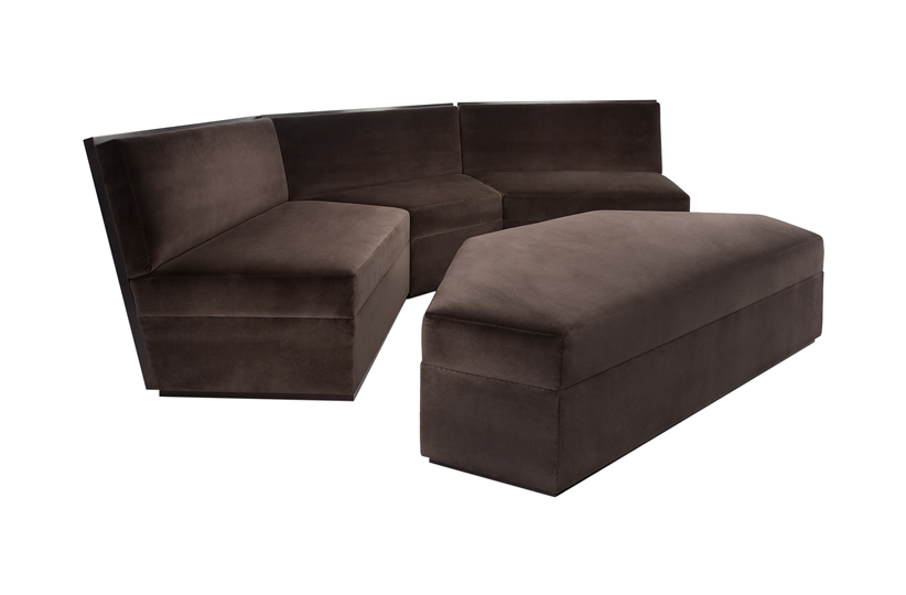 A compilation of three arm less chairs with fixed clean lined seat cushions. Complimented with an ottoman that fits perfectly creating a unique modern shape. If you are looking for a similar product, please get in touch with our sales team who will be happy to help personalise your sofa for your individual requirements.