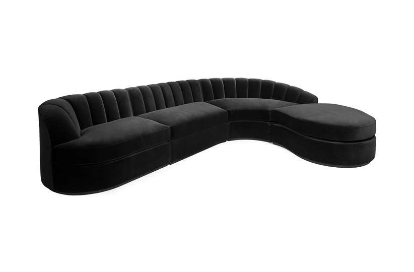 Organically shaped corner sofa with beautifully hand crafted fluted backrest. the sofa chaise ends with a superb rounded ottoman piece. If you are looking for a similar product, please get in touch with our sales team who will be happy to help personalise your sofa for your individual requirements.