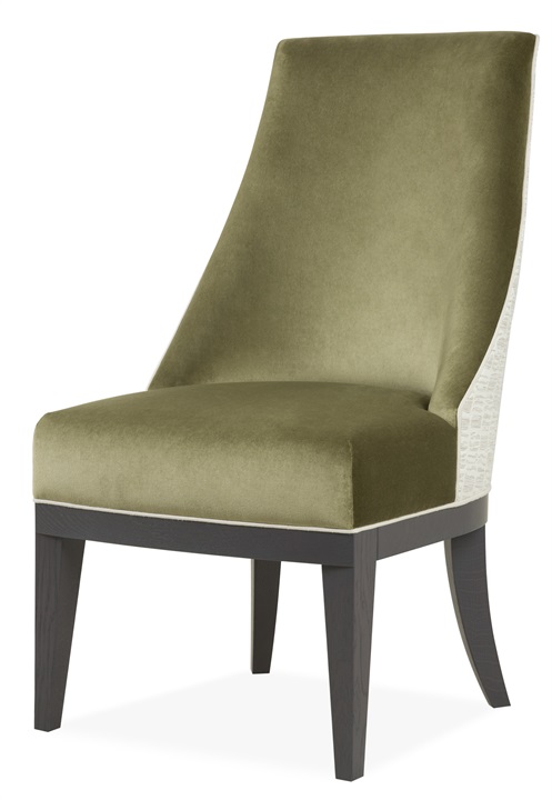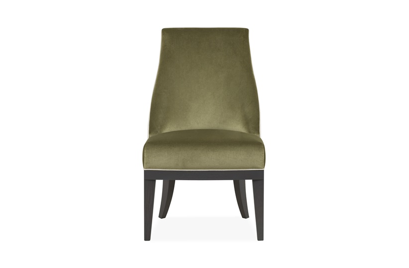 Bring an unparalleled dining experience with this luxury dining chair. The classic design with the clean lines, chic back and smoothly sweeping sides, masterfully blends with the solid wooden legs that slightly expand to the back’s outer face, giving it a modern twist. A timeless piece both for a classic and a modern interior. Its elegant design embodies a sloped back and padded seat ensuring a seating of superb comfort. An upholstered dining chair that offers endless possibilities to perfectly suit your dining room. Simply select your fabric, piping and solid wooden legs and our craftsmen will bring it into life for you.
