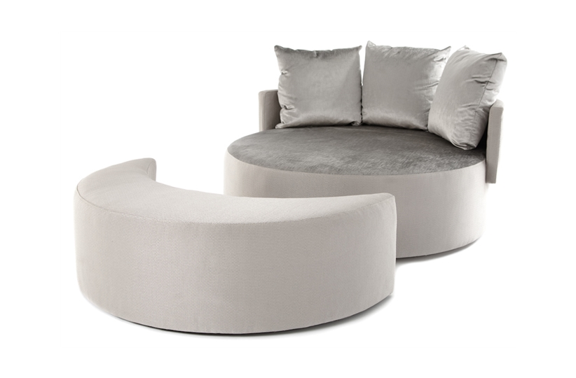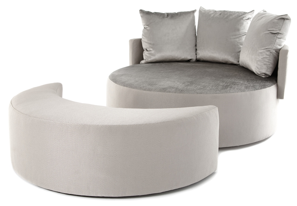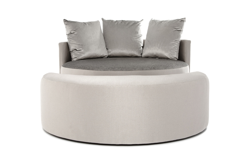 A round chair and ottoman with swivel mechanism produced for one of a bespoke projects. We can reproduce this versatile design in the same dimensions and for the price listed on our website. Alternatively if you require different dimensions we can alter the size to fit your exact requirements. Talk to one of our friendly sales consultants for advice