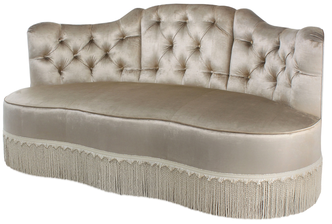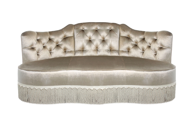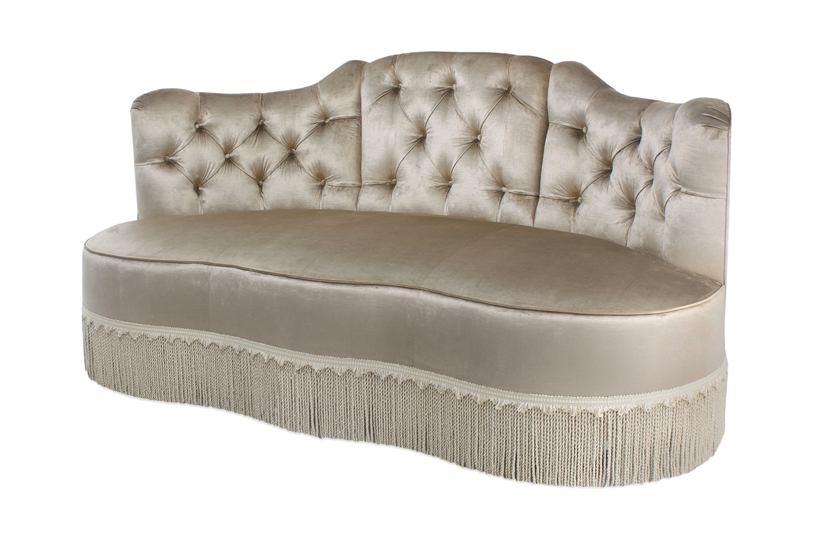 A stylish curved back sofa with beautiful deep buttoning. Featuring an open seating design with delicately fastened plinth boarders, making this sofa a charming addition to most room sets. We can re-create this beautiful bespoke sofa according to your requirements, adjusting the fabric and size as necessary.