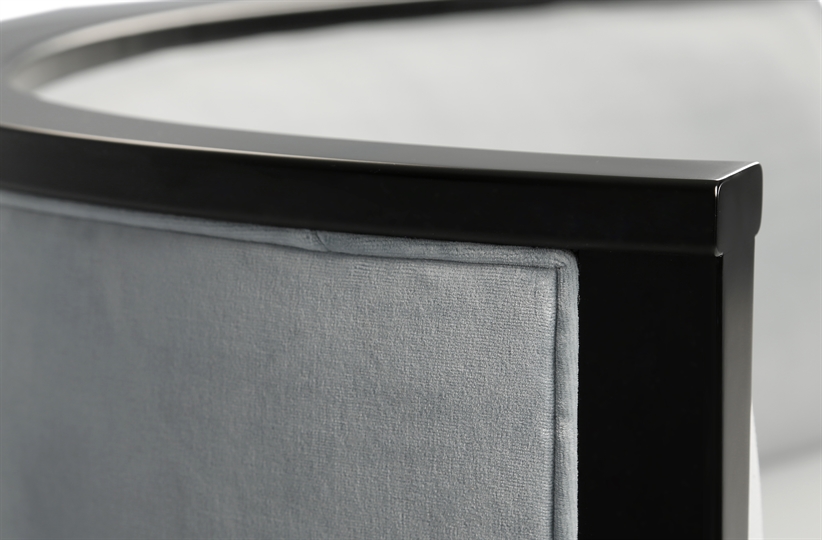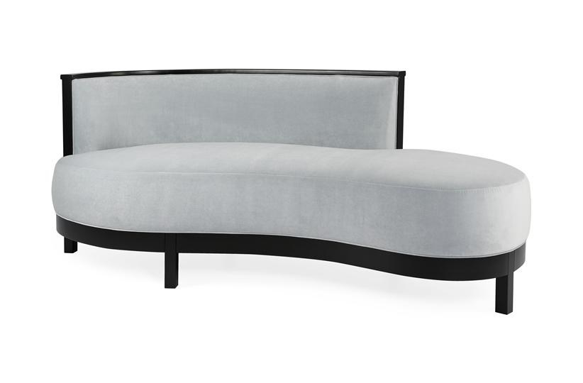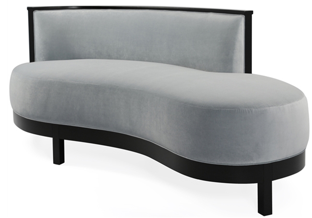 A sophisticated tear drop inspired sofa, featuring plinth legs and fixed seat and back. Finely finished in a soft elegant fabric. This piece adds character to most rooms and can also serve as a chaise. We can re-create this beautiful bespoke sofa according to your requirements, adjusting the fabric and size as necessary.