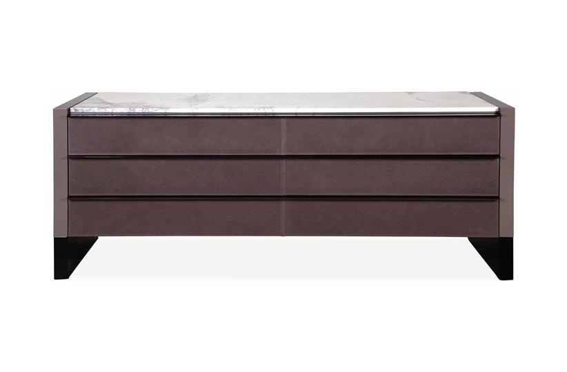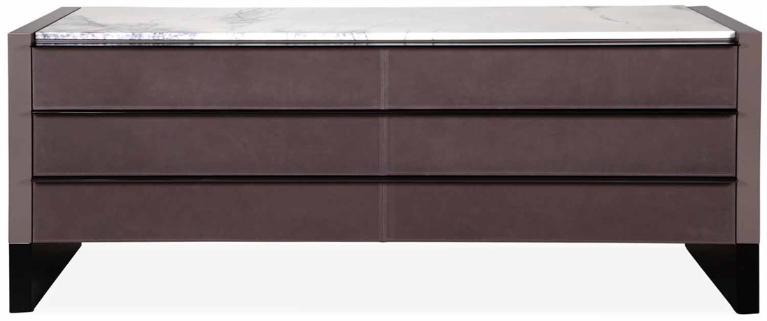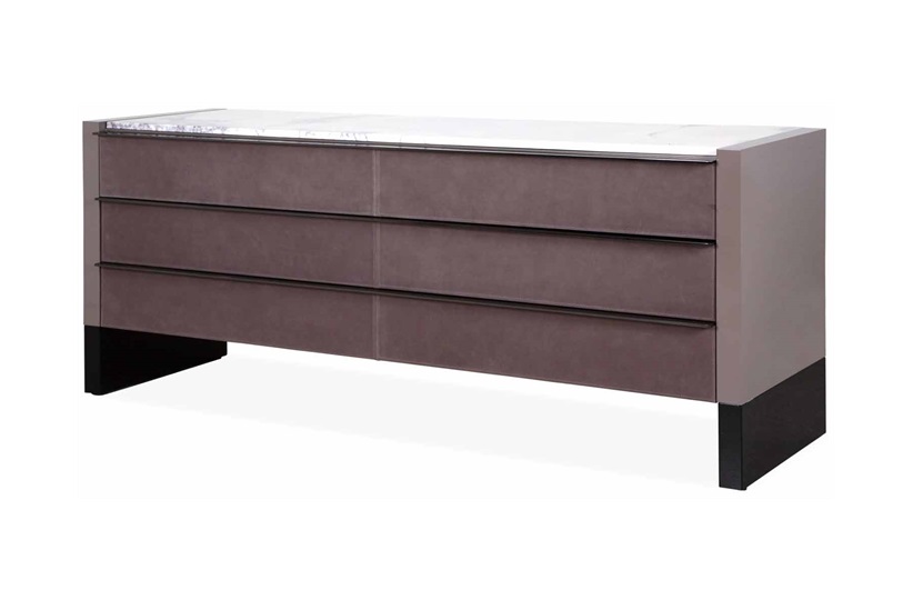 Dresser in high gloss polyester grey lacquer with top in marble. 3 full extension double drawers with fronts in natural protected nubuk leather, botton part in velvet fabric. Base, legs and handles in black nickel steel. By Giorgio Collection MR-VISI-DRE-001-001