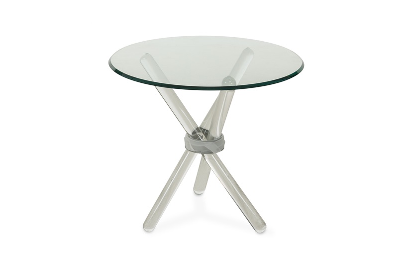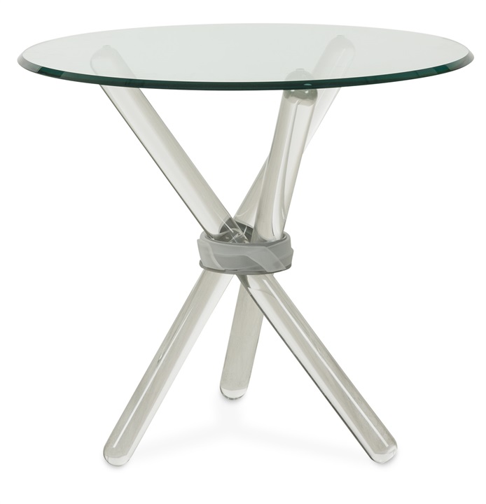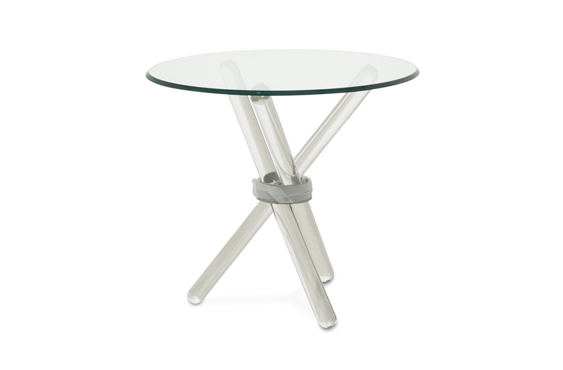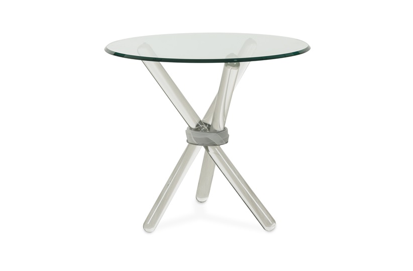 A sleek solution for smaller interiors, our Oodan side table pairs bevelled glass top with glass legs, featuring sandblast detail. A stylish piece for your living space, it blends texture and form, reflecting light to create a look that is ultra-modern yet charming.