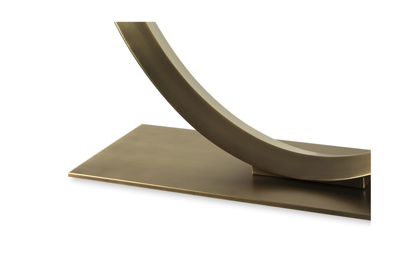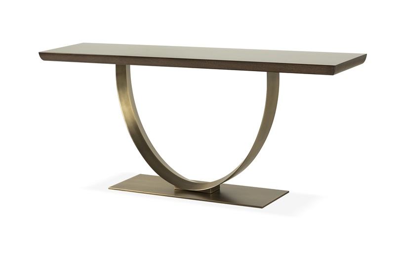 Finished in a beautiful polished wood veneer, this refined console table is composed of a semi-arched bronzed base and combines the finest materials with elegant lines to deliver a stunning piece capable of elevating any entrance space. MR-WIMB-CNS-001-001