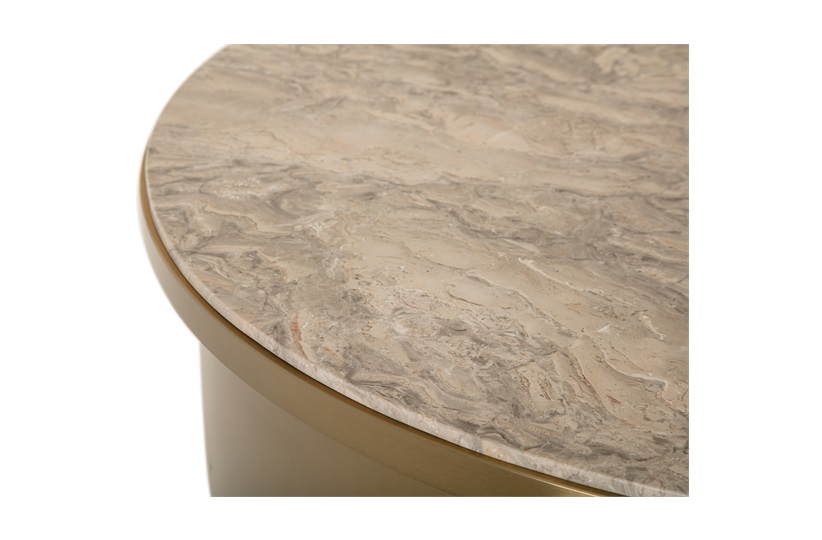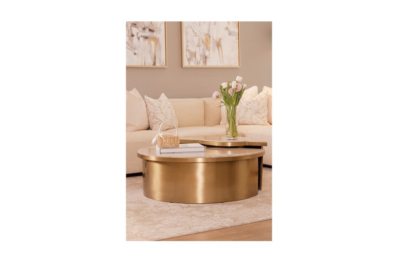 Make a statement in the centre of your living room with the Marron 2 Part Coffee Table. This stunning Drum shaped table is highlighted with brush brass and showcases a stunning marble table top. This piece will be sure to make any interior bold. MR-MRRN-COF-001-001