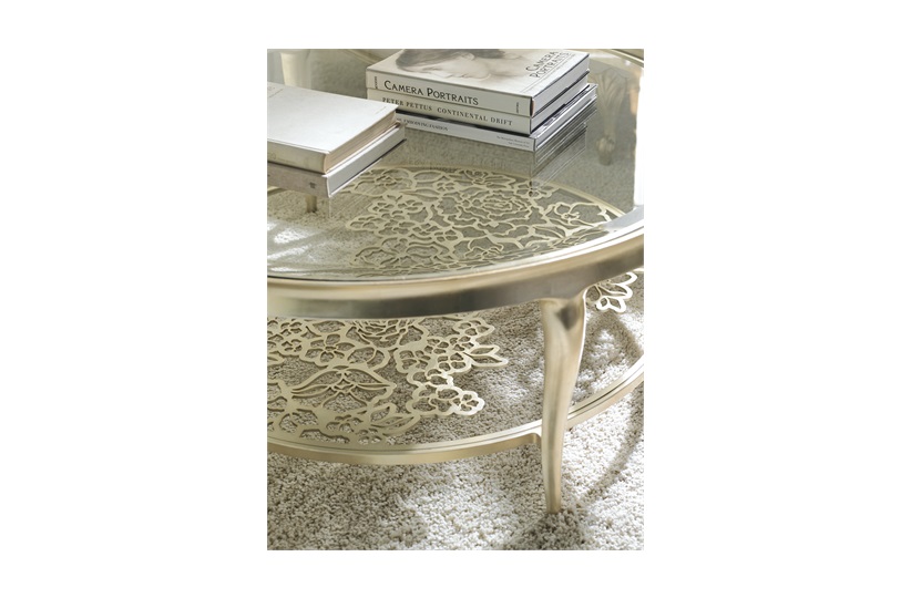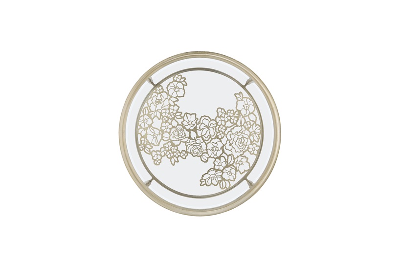 This cocktail table is distinguished by its cut metal grille that comes to life in floral splendour. Handpicked is luminous with its bevelled glass, wide concave apron, and graceful cabriole legs, bathed in Oracle silver leaf. This piece’s updated style exhibits a metal stretcher of cut-out flowers arranged in a geometric pattern for glorious effect. MR-WESL-COF-002-001