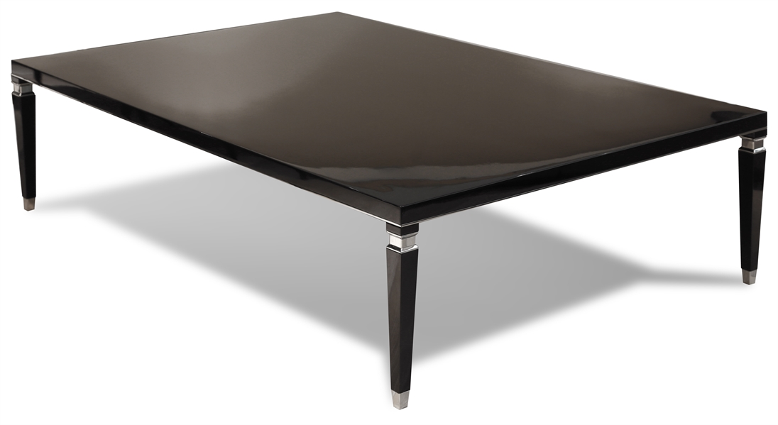 The Emblem Coffee Table features an oversize rectangular top in black high gloss lacquer with a tapered neo-classical leg & chrome detailing. Perfect for large living spaces, the Emblem collection can be viewed in our showroom. See Related Products for more from this range. MR-LUX-COF-002