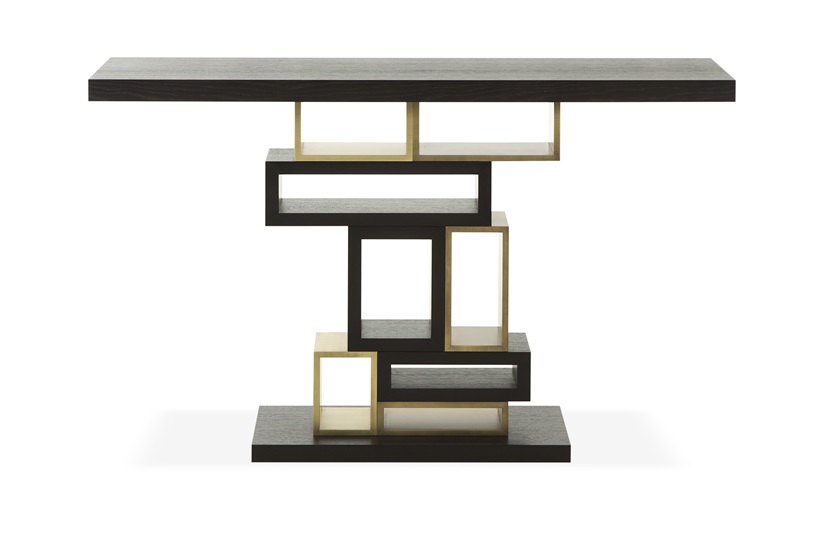 A true work of art in its own right, the Edge console table transforms any sparse corridor into a sculptural gallery. Inspired by Art Deco geometrics, this piece juxtaposes natural and man-made materials with the combination of dark wood and bronze. One of a kind, this console will suit a range of interior schemes, from classical to contemporary.
