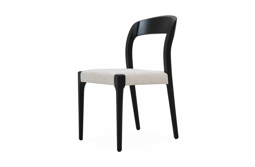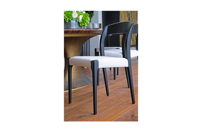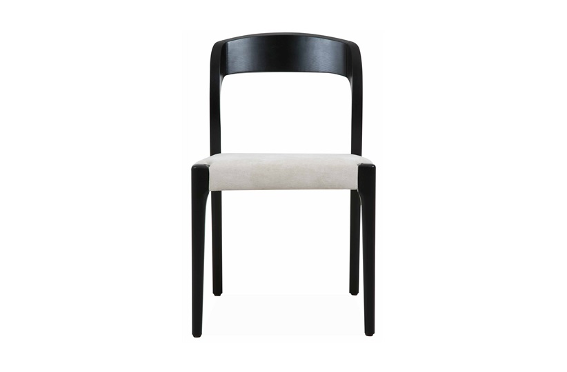 Gunilla`s sculpted wood brings a touch of fluid elegance to the functional simplicity of this Scandinavian-inspired chair. This dining chair has a solid wood structure in black finish. By Hamilton Conte. MR-GUNI-DIN-001-001