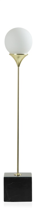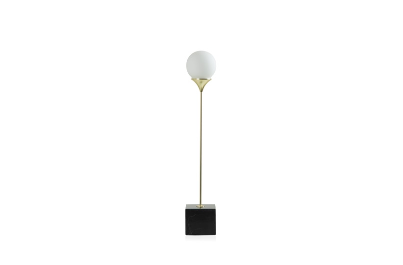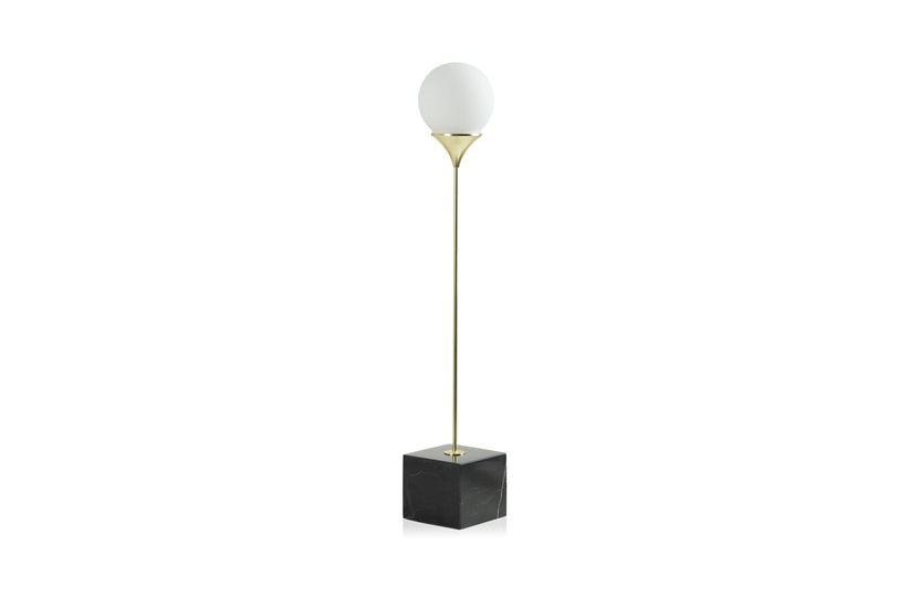 The Lan contemporary table lamp that cleverly blends various forms and luxurious materials into a minimal style with a twist, bringing opulence and sophistication to modern interiors. The frosted glass sphere is cupped by a sleek mat gold metal body that rests on a luxurious black marble base. Looking equally perfect on a side table, console, bedside table and home office table, this light is a master of luxurious understatement.