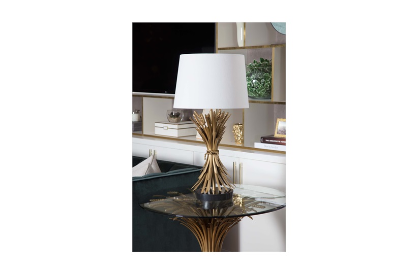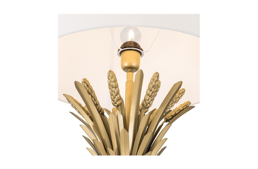 By Eichholtz. Bring a little flair up to eye view with the Bonheur Collection table lamp. Situated on a black marble base and topped with a white shade, the antiqued metal fronds of the wheat sheaf flair outwards like a clutch posey of flowers. Taller than the average table lamp at 85cm this is a statement piece that is sure to spark conversation.