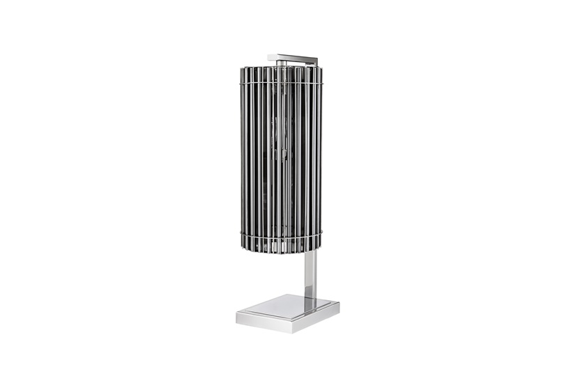 Channel the metallic modernity of the Pimlico Table Lamp into your home décor. The sleek lamp base with nickel finish has a sculptural exterior with smoke glass rods that encourages an enchanting, atmospheric ambience. MR-PIML-LMP-001-001