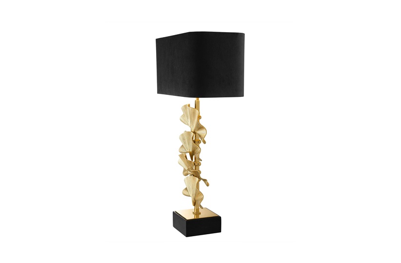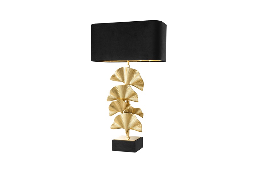 If you love the botanical jungle trend, the Olivier Table Lamp is a must have for you! With its elegant curves and intricate detailing, this arborous beauty will grant tropical opulence to your interior. The lamp base features 4 polished brass palm leaves and a black granite base plinth. It comes with a black velvet lampshade. MR-OLIR-TAB-001-001