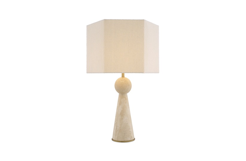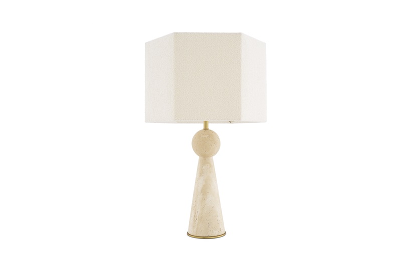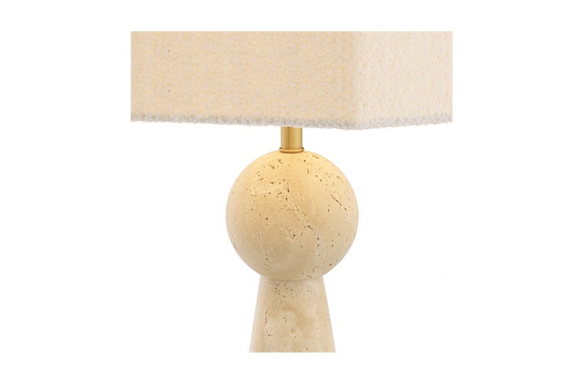 Travertine | antique brass finish Including bouclé shade. Indoor use/dry locations only. MR-NOVK-TAB-001-001