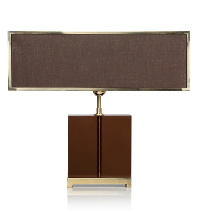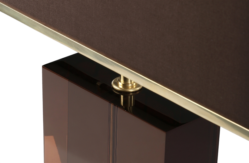 Fashioned from smoked acrylic with a brass base, the argyle table lamp makes a stylish addition to the contemporary interior. The smooth brown shade is offset by the striking metal border, creating a clean and crisp design visual. MR-SEL-LMP-001