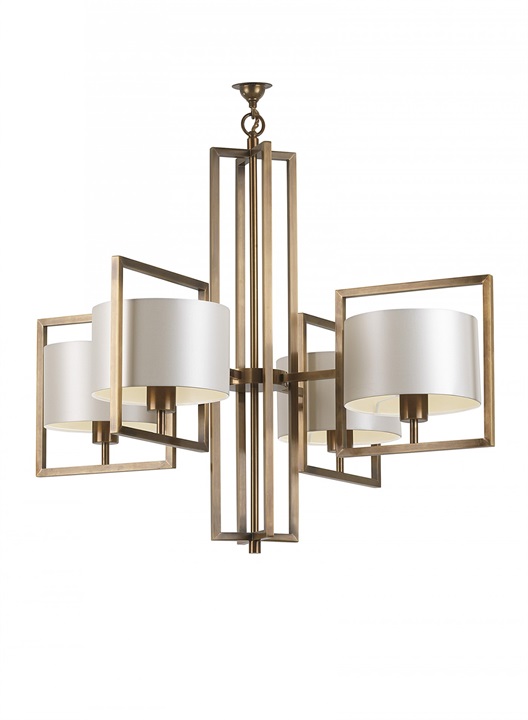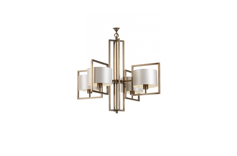 The Conniston chandelier’s bold lines, sharp angles, and glamorous antique brass finish combine to create a statement ceiling centrepiece. Its chic ivory shades and sculptural form will make it the perfect addition to a contemporary dining room.