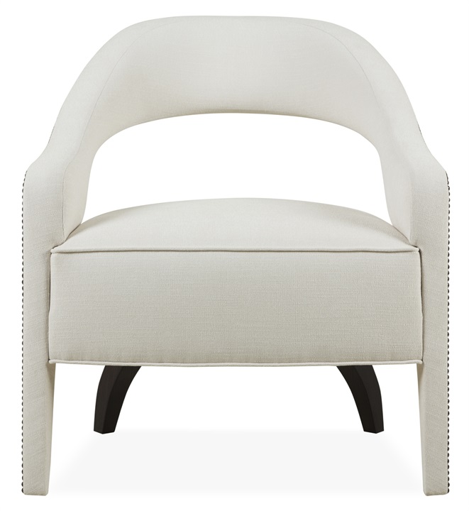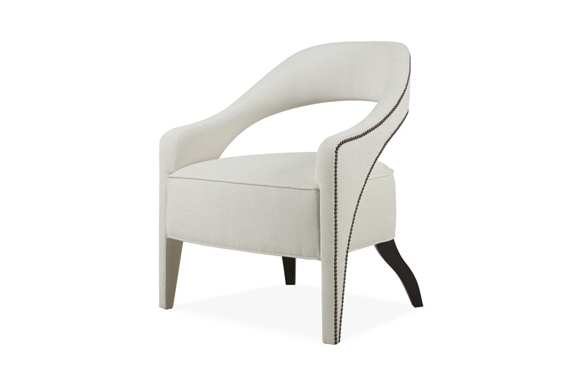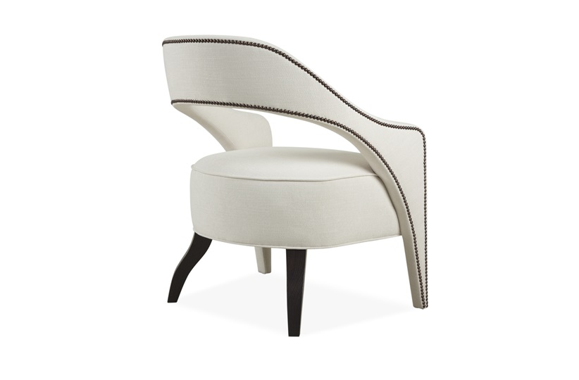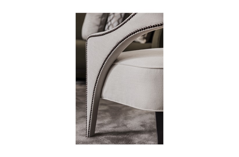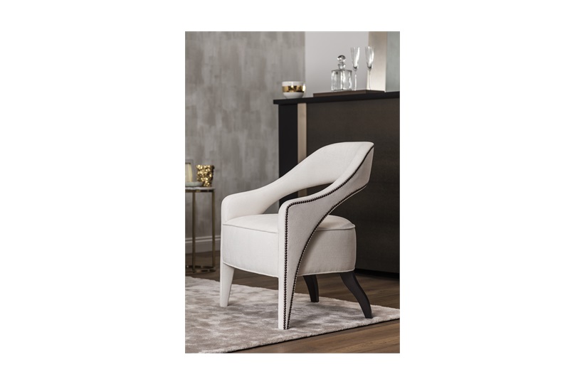 The Wolseley occasional is a statement piece destined to become a classic. It features a wrap-around suspended backrest that extends into upholstered, tapered legs with the studding detail outlining a beautifully unique shape. The sinuous lines of the piece continue with curved rear wooden legs. With over a dozen wood and stud finishes and thousands of fabrics available to choose from, this chair is the perfect piece to add character and charm into a room.