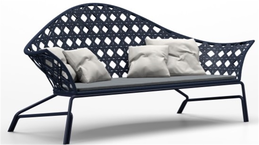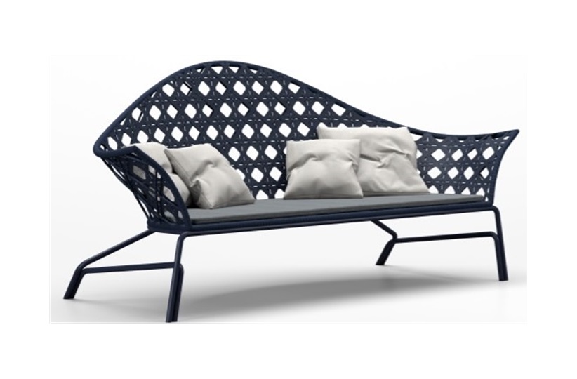Smania's outdoor garden furniture is enriched with a line of furniture made with the exclusive weave of polyester tape. This armchair is part of it and, together with the homonymous sofa, complete the most exclusive dehors. The perforated weft expresses the classic and modern style because it recalls the weaving of the Vienna straw, but using polyester. Samos, therefore, embodies both styles to match those outdoor furnishings that do not exclude either one. The plot also has a decorative function: thanks to the empty spaces, it highlights the environment in which Samos is located. The same spaces then create plays of light and shadow when illuminated.