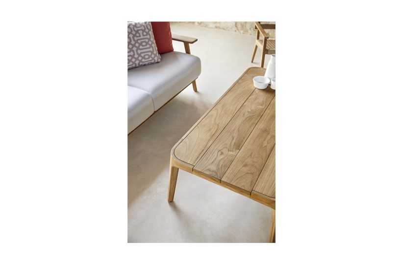 Rectangular coffee table. Frame and top in grade A teak from sustainable logging forests in Indonesia. Adjustable legs. MR-PARA-OCOF-001-001