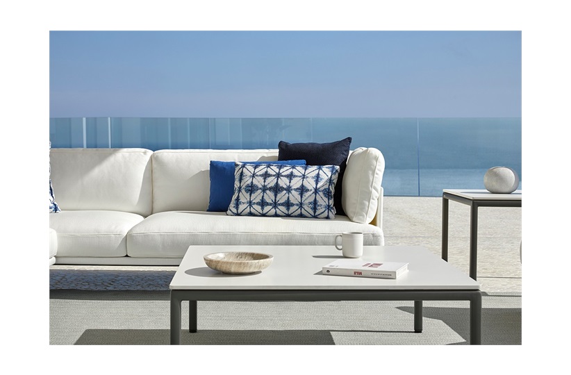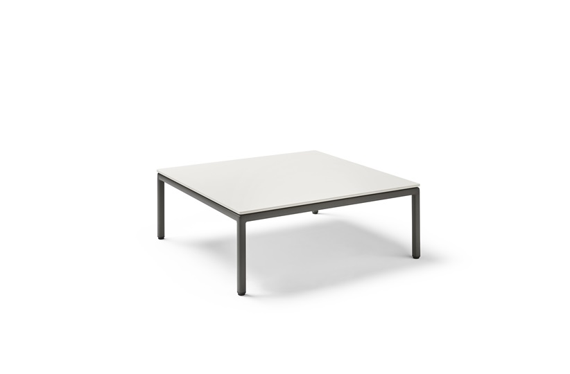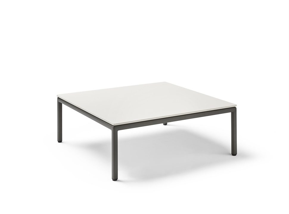 Square 100 x 100 cm coffee table with powder-coated aluminium frame and adjustable legs. Aluminium finish in one colour: Metallic grey 56. MR-LNGI-OCOF-002-002 MR-LNGI-OCOF-002-001