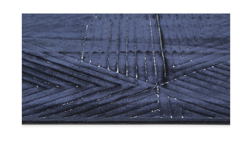 Exclusive design by The Sofa and Chair Company. The Manu rug takes its inspiration from art-deco geometrics and detailed patterns. The combination of navy blue and crisp white make this a stylish piece for contemporary spaces. Featuring a short loop and cut pile and hand-tufted from pure botanical silk, Manu is endlessly soft with a slight sheen to highlight the intricate pattern. Available to custom.