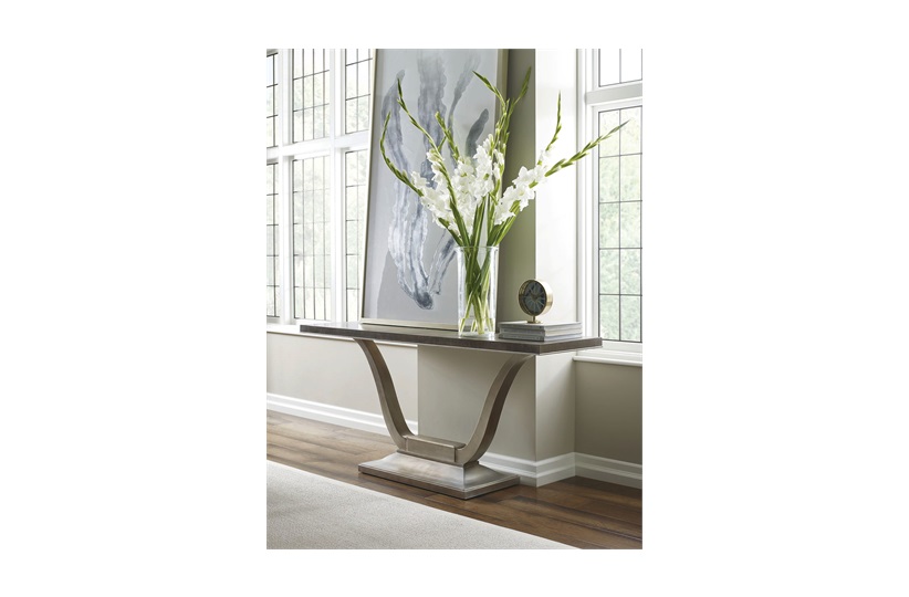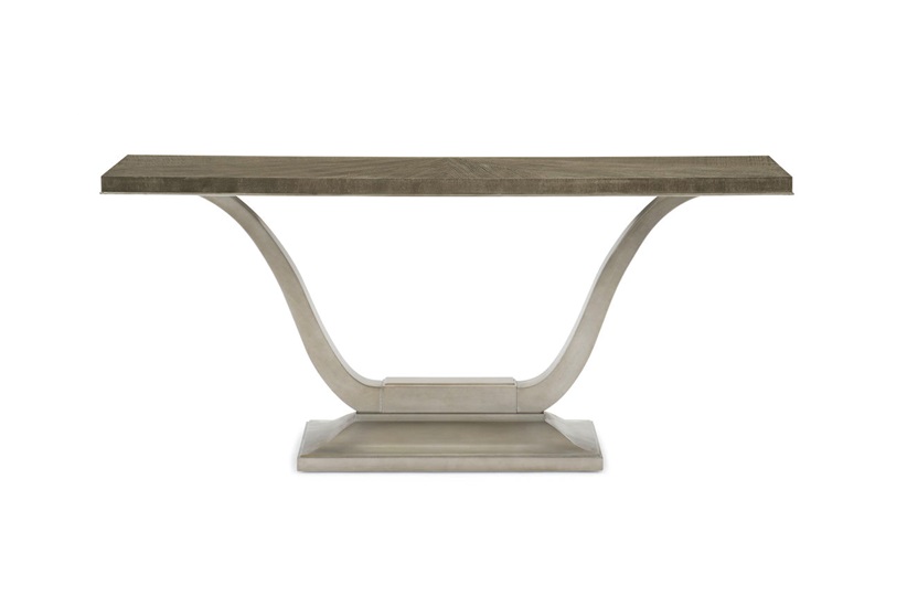- Features: Top and aprons in Elegant Linen with apron bead in Soft Silver Paint. Base in Soft Silver Paint. Ships KD.