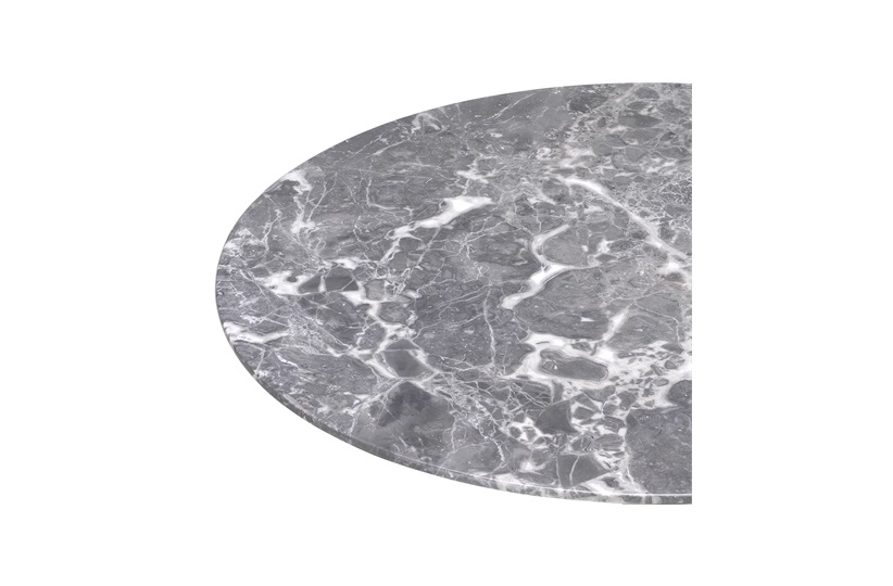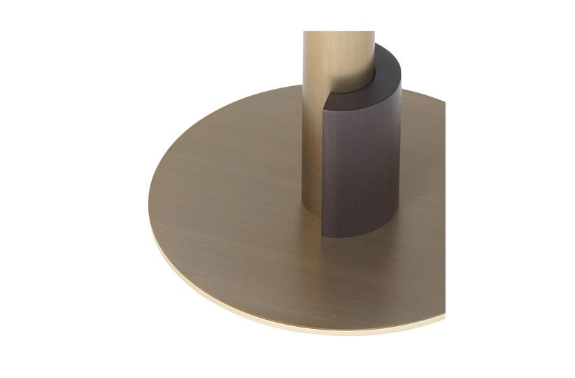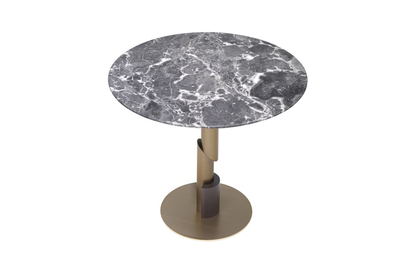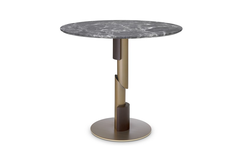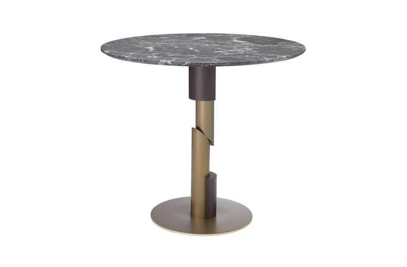 A true showstopper, Dining Table Flow features a sculptural design that combines different materials and finishes to create a masterpiece. The grey marble tabletop is mounted on a free-shaped brushed brass pole with brown veneer accents that stands on a round brushed brass finish base. Sleek and stylish, this beautiful dining table works everywhere. MR-FLOO-DNT-001-001