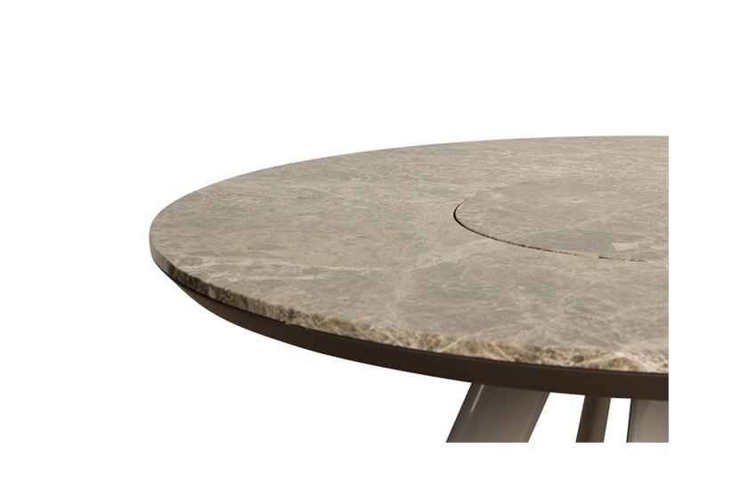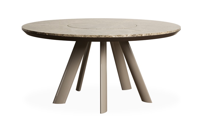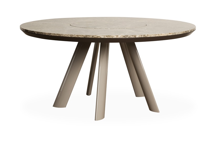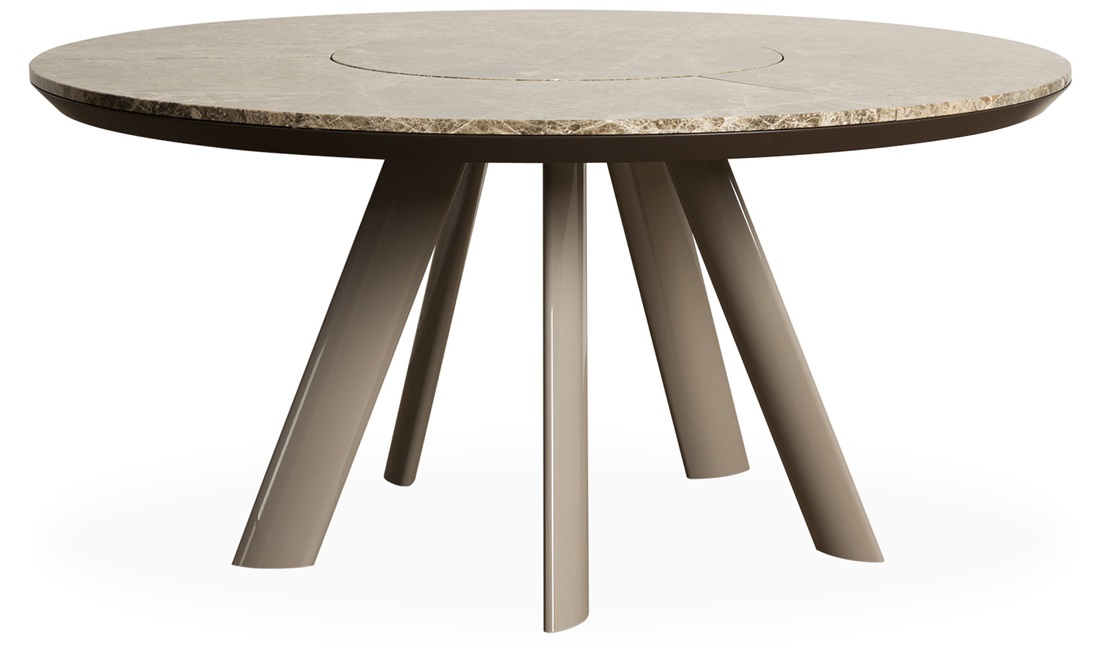 The Falcon dining table is formed from a stunning circular marble table top, situated on top of shiny fumo lacquered finished legs. This impressive piece has a contemporary feel with the benefits of classic finishes.