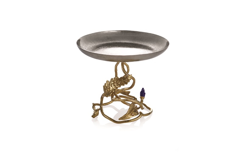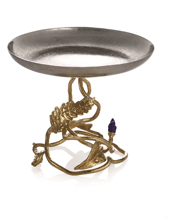 Enchanted Garden is a collection inspired by the magical quality of spring. Sculpts of intertwined brass vines and stems gracefully emerge from a fantasy garden adorned with snails and semi-precious stones and dew drops made of Austrian crystals. Add a touch of whimsical opulence with this serveware collection. MR-ENCG-ACS-004-001