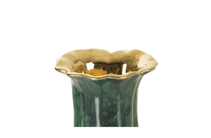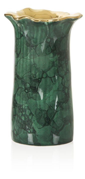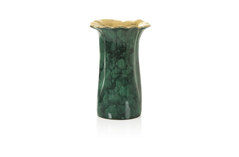 Subtly geometric in form, these beautiful styles are both modern and classic. The rich green malachite pattern is reminiscent of Venetian ceramics and completely on trend. Embellished with 18k gold these pieces are luxurious, decorative pieces. MR-MALA-ACS-003-001