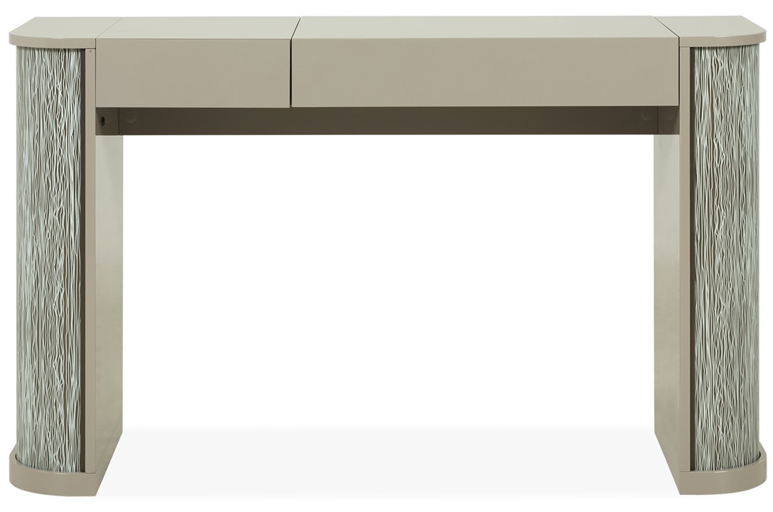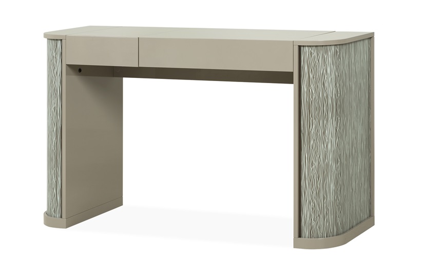 This stunning dressing table is styled in high gloss Fumo Lacquer. The design features a curved crossed Dune pattern laser etched into glass, exclusively designed by Reflex for The Sofa & Chair Co. With LED-lighting. A chic storage solution. MR-HOLB-DRE-001-001