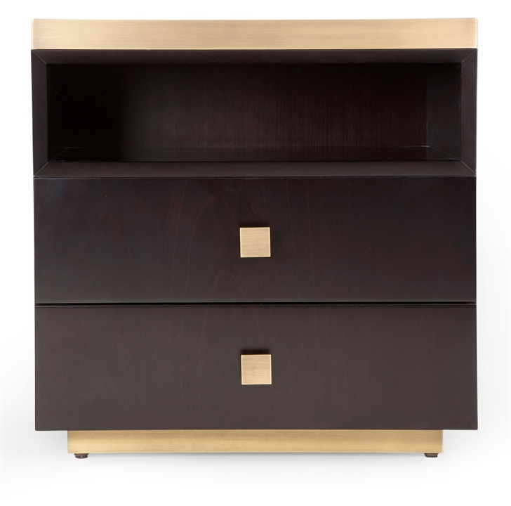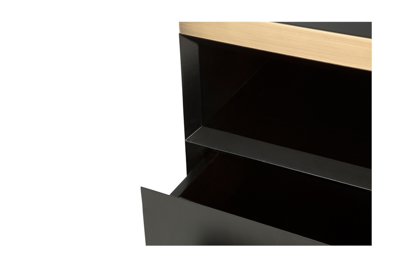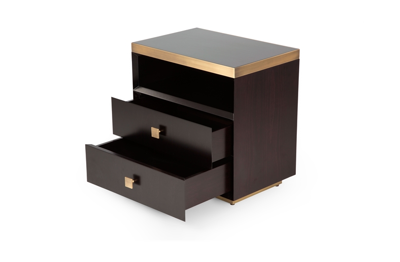 Understated yet on-trend, our Bedford bedside table features brushed brash detailing, two chamfered draws and a metallic inlay band and skirting which give the piece a distinctly polished feel. Works perfectly as part a pair in a symmetrical scheme or as a standalone item to make the most of a smaller space. MR-FRA-BST-001