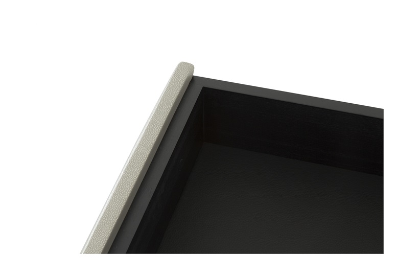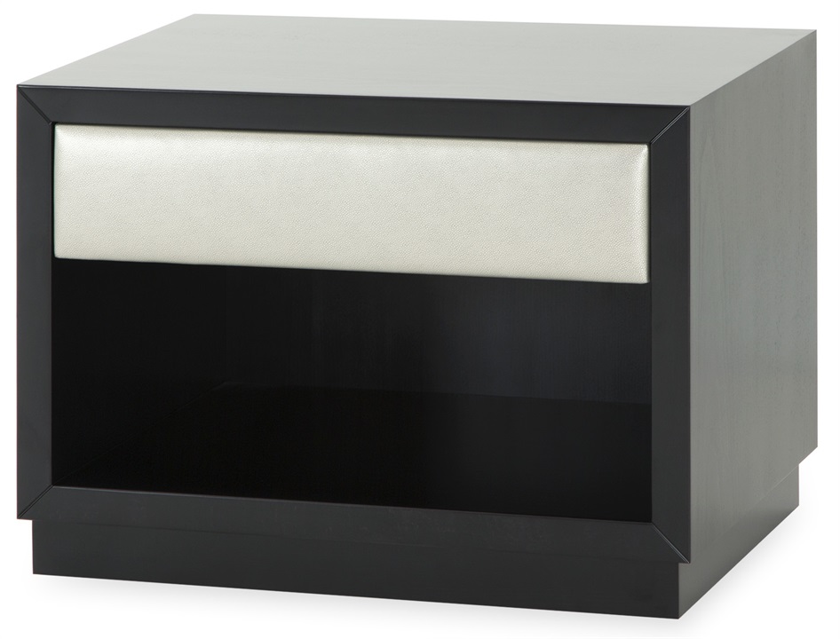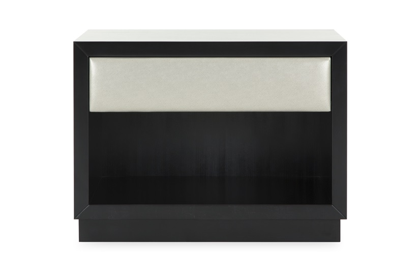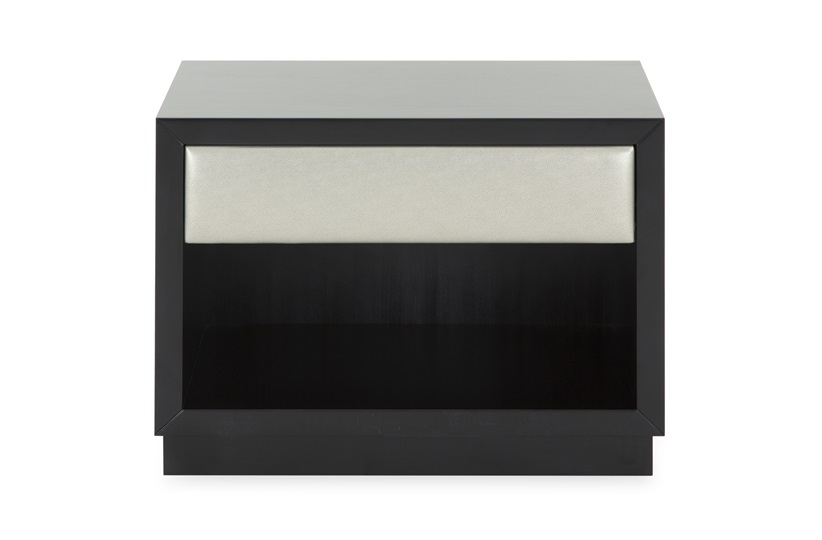 The Soho side table is a practical and elegant piece designed to complement a number of the beds in our range. The lacquer-textured surface and leather padded drawer enhance the richness of the design while the cream coloured draw contrasts beautifully with the dark lacquered wood. The size, fabric and wood finish can be tailored to your requirement. SR-SOHO-BST-03-F005