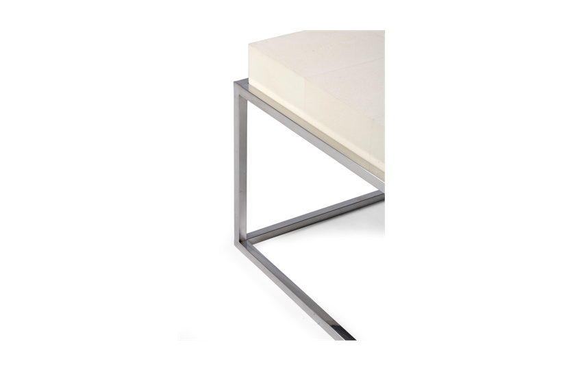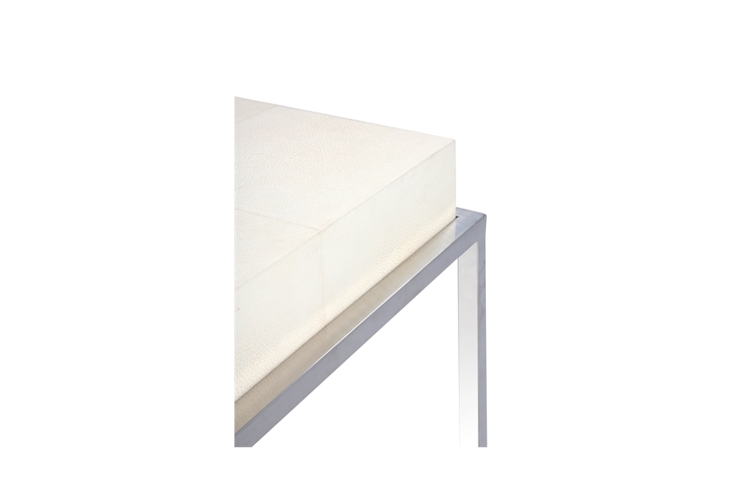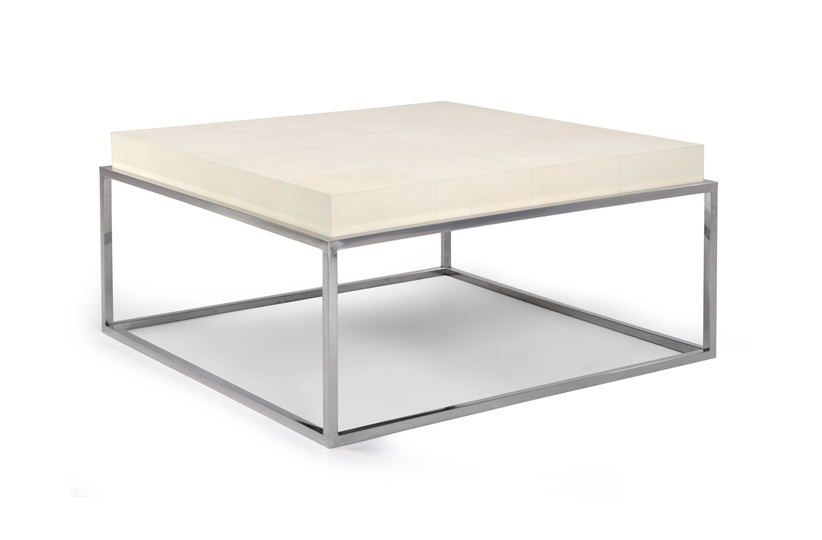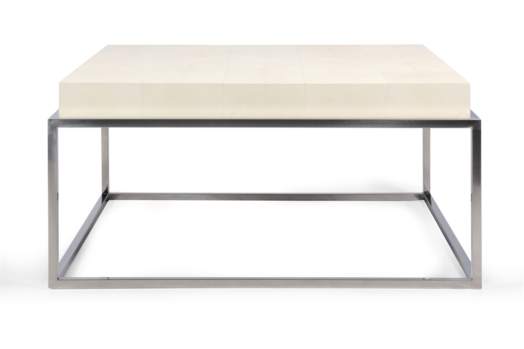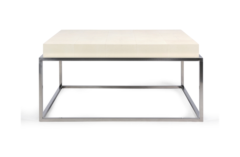 The Shagreen Coffee Table features a square ivory Shagreen (Ray skin) top and a polished stainless steel base. See Related Products for other items in the Shagreen collection. MR-GIN-COF-001