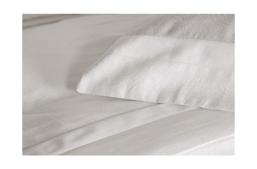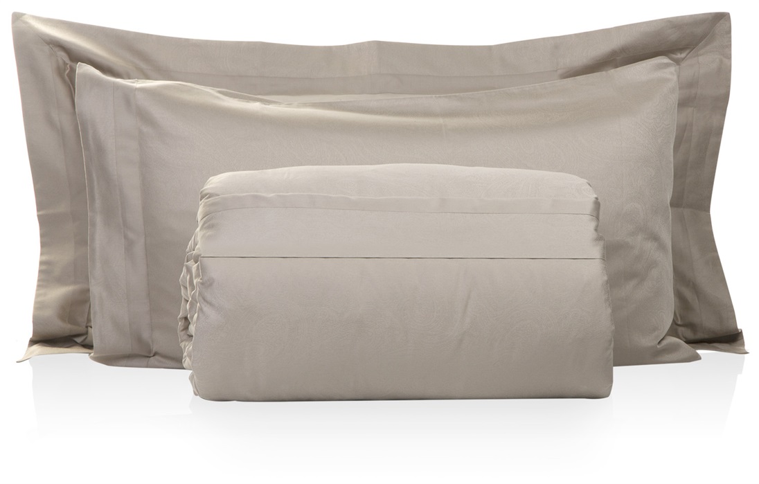 Mix modern styling and classic design with the elegant Paisley Tempace jacquard bedding range. Its sumptuous jacquard border is given a contemporary twist, with its refreshing neutral colour palette. Woven from high quality cotton sateen, this 300 thread count range will suit a variety of interior schemes. Available in the following sizes: Double, King, Super king, Emperor and available in 3 different colours: white, mocha and dove grey The set includes: 1x Duvet cover, 1x Flat sheet, 2x Standard pillowcases and 2x Oxford pillowcases.