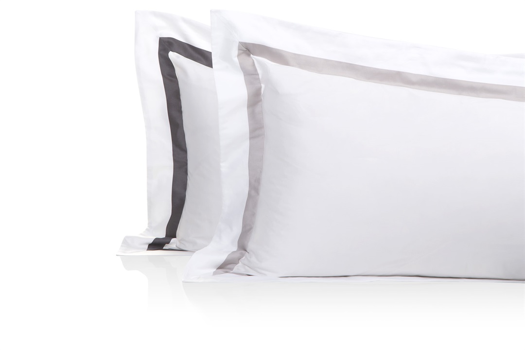 Relax and unwind in the pure luxury of this 600 thread count Oxford Pillowcases, Made from the finest Egyptian cotton sateen in brilliant white, completed with a simple border edge detail in your choice of grey or beige. This luxurious linen will complement contemporary interior schemes.