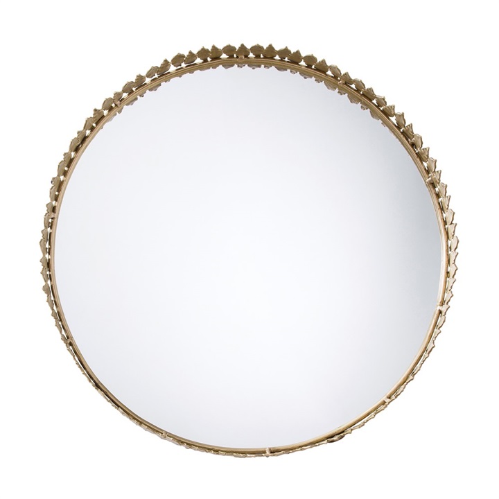 An intricate leaf border crafted from hand-finished matte brass is the defining element in our Athena mirror. Display above a console table or in a dressing room to add a touch of glamour. MR-ATHE-MIR-001-001
