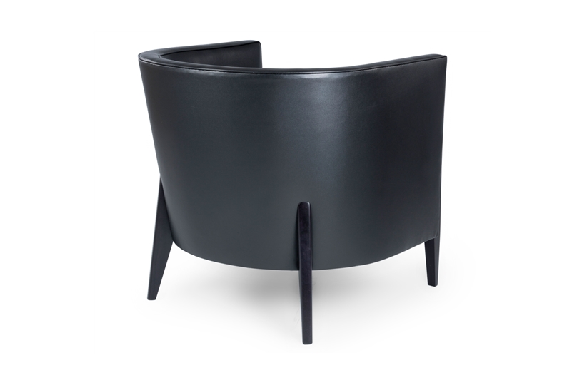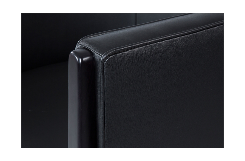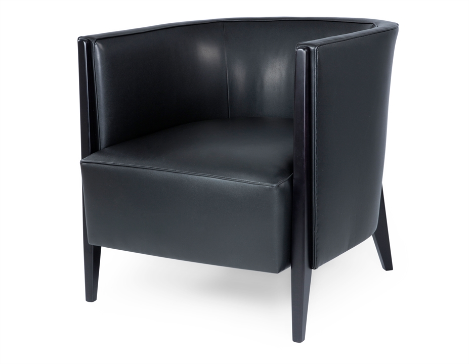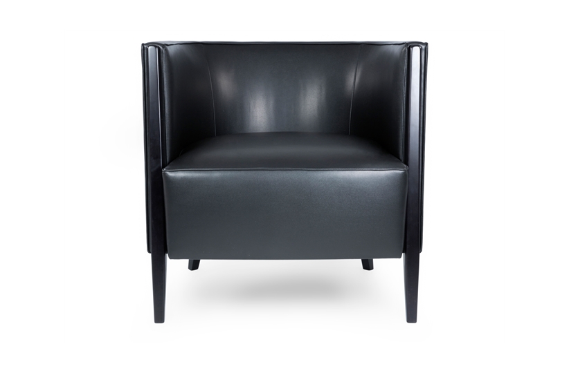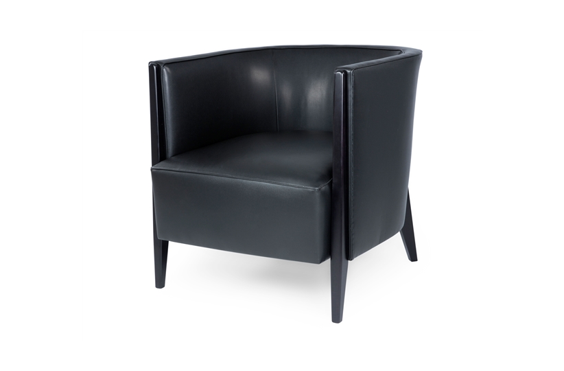 Large bespoke reception style armchair with dark show wood detail. Upholstered in Panaz Stingray Black. SR-BB-ARM-M-F001