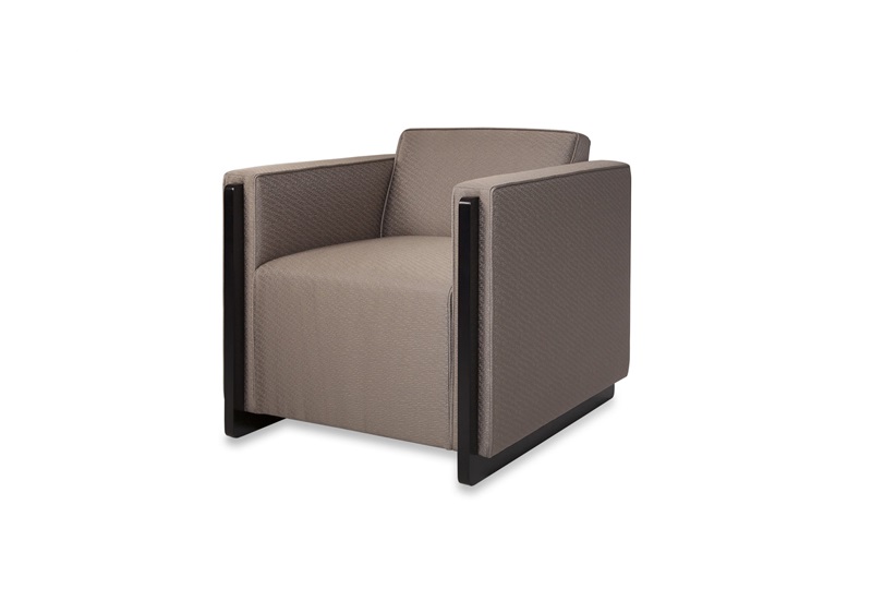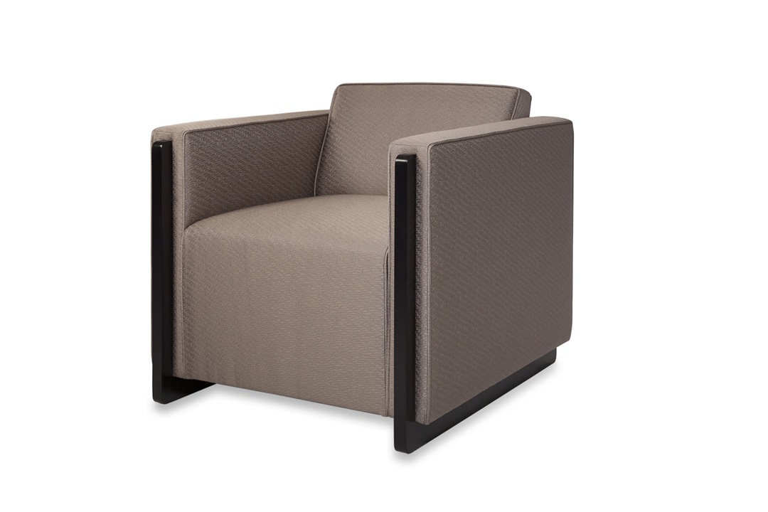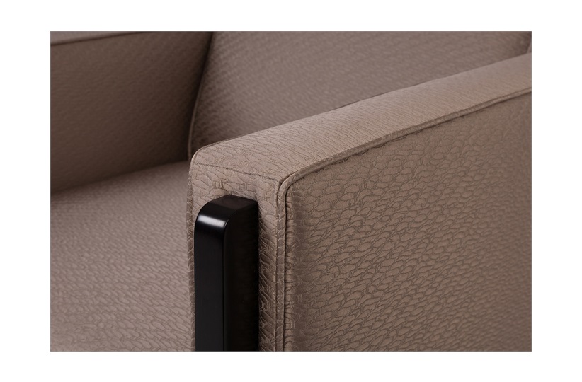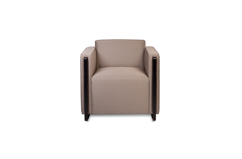 Art deco influence meets innovative design in the Marcel. This eye catching piece is an admired contemporary chair complete with piping and show wood detailing to the front of the arms, moulding seamlessly into the legs. The fixed seat is sprung for decadent levels of comfort. This versatile piece can be upholstered in a variety of fabrics or leathers. SR-MARC-CHA-F903