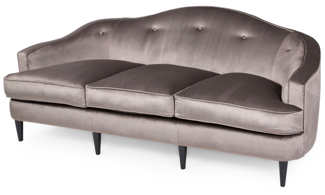 Bernini is a contemporary take on a timeless, classic design. The attractive swept lines and beautifully curved back are upholstered with shallow buttoning and detailed piping, creating a truly iconic piece that can elevate any space. Foam-wrapped feather and down seat cushions ensure supreme comfort. Bernini comes with removable legs for easy access. SR-BERN-SOF-25-F001