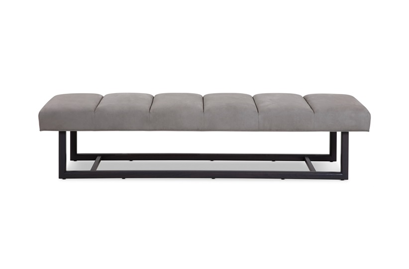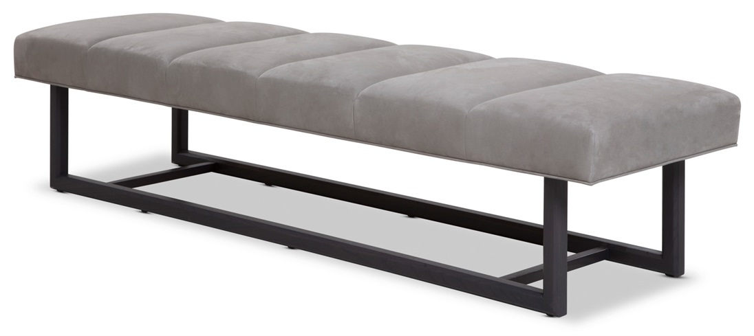 Our Constable bench is a true synthesis of style and comfort. Features a fluted seat cushion with piped detailing, and beautifully detailed show wood leg frame. Use this Constable bench as extra seating or a luxe addition to the foot of a bed. SR-CONS-BEN-06-F002