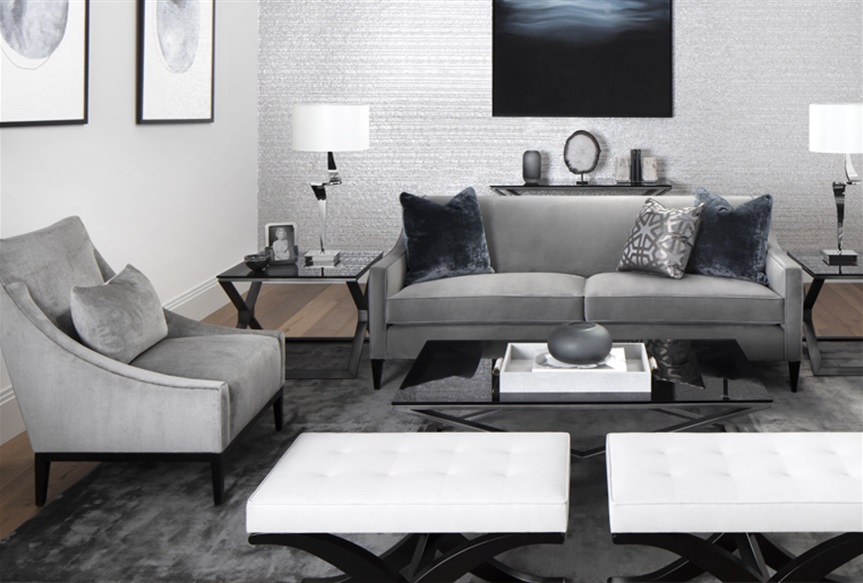 Available as a 2.5 and 3 seater sofa in Merlin Pearl and Merlin Grey velvet